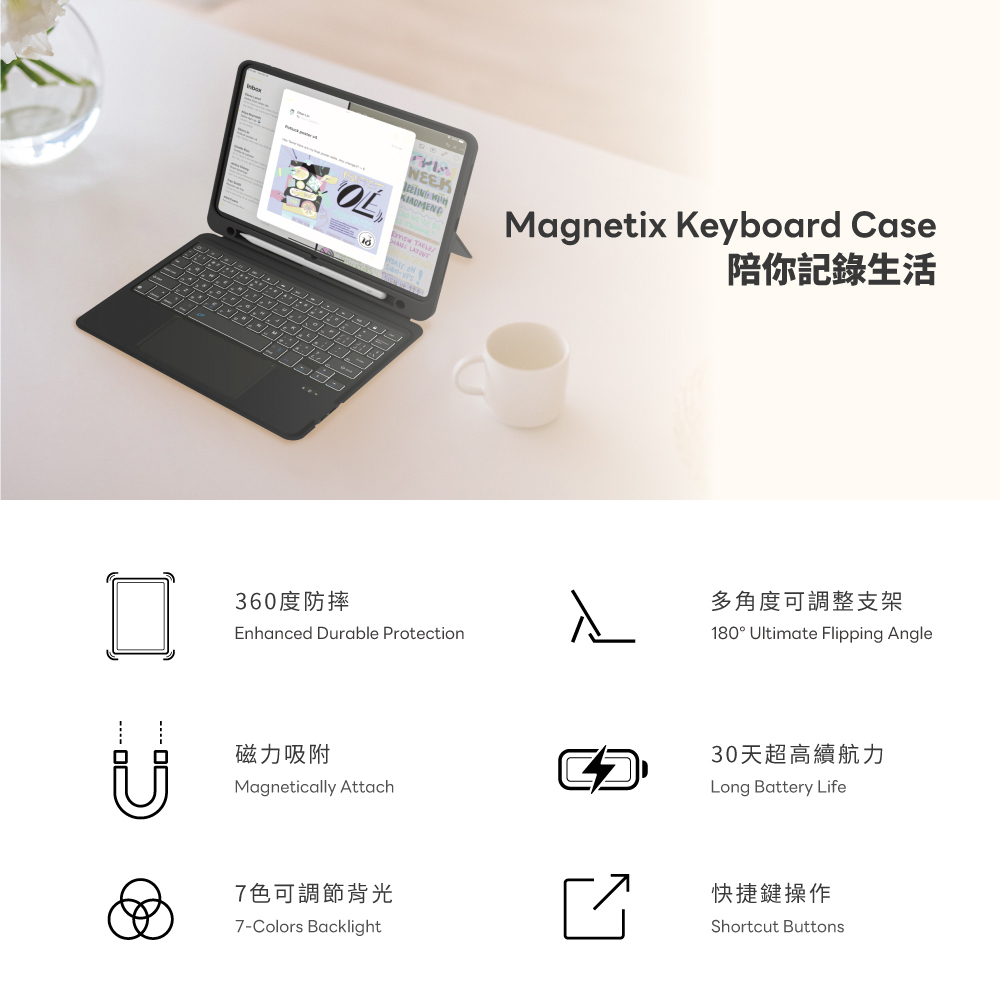 注意:Magnetix 2(iPad 7/8/9 款)以經典單色呈現,簡約大方,無跳色設計